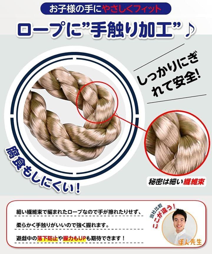 サイズ : 座部 43x16.5x4.3(cm) ロープの太さ13mm ロープの長さ約75cm~225cm(調整可能) 素材 : PEプラスチック *「ケンコバハンズ」は登録商標です。