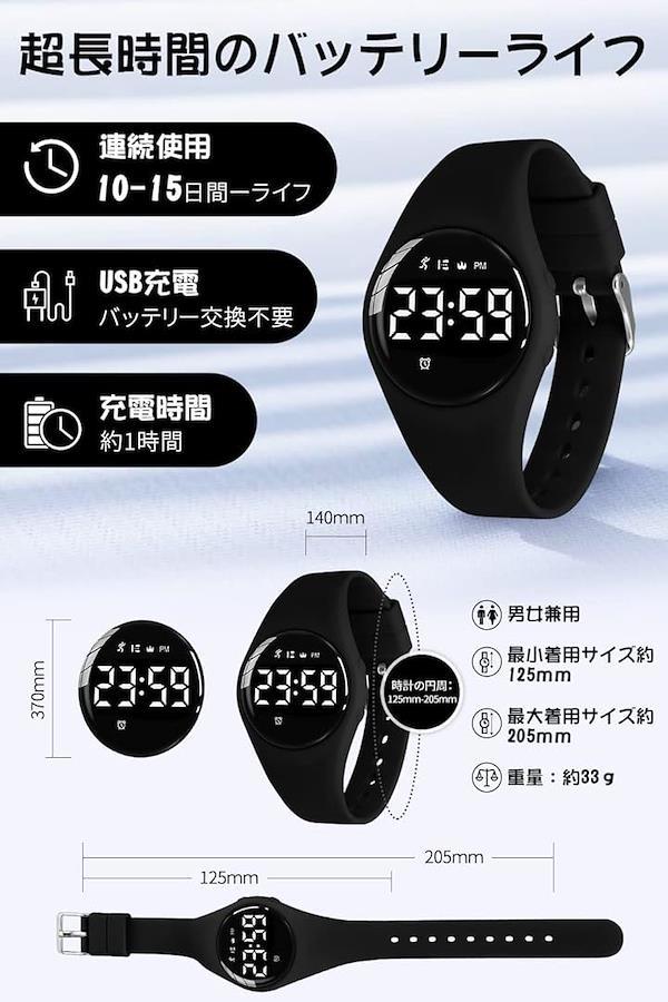 [USB充電式-長持ちバッテリー]:充電式 デジタル腕時計は便利な充電式のデザインを採用しており、使いやすく、電池交換も必要ありません。