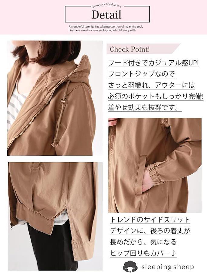 ・袖口はゴム入りで、さっと腕まくりをした際にも留めやすいから、7分袖アレンジも可能..すこし大きめなフード付きでカジュアル感もUP. 小顔にも見せてくれる、計算されたデザインも魅力の1つ。