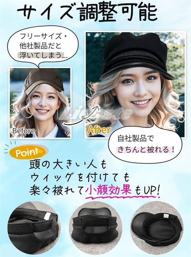 またテープが装着しておりますので、頭の大きい方やウィッグ装着時でも簡単にサイズ変更が可能となっております。