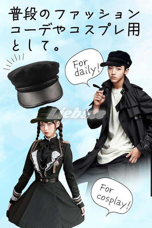 このマリンスタイルのキャスケットは、フロント部分に飾りひもが取り付けられており、サイドにはボタンが装着されています。