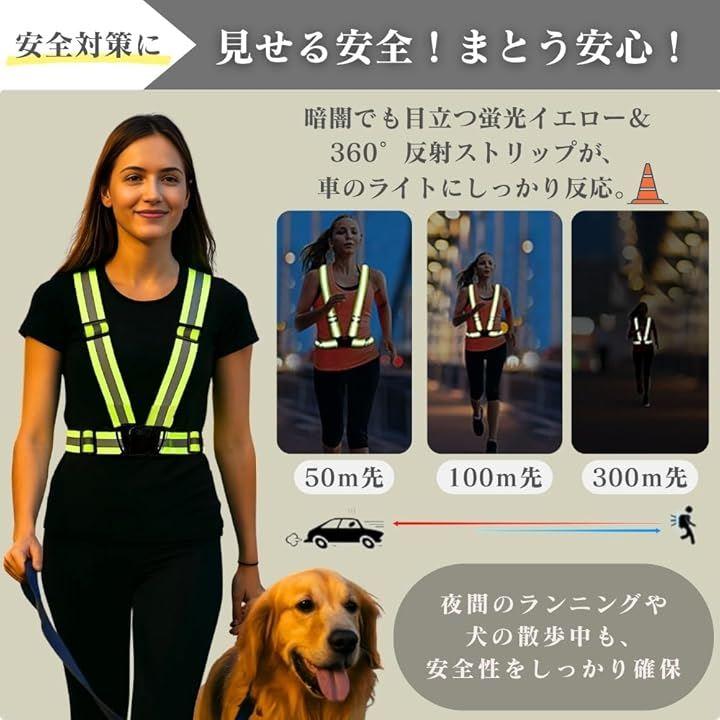 「夜間ジョギング・犬の散歩に最適」暗闇でも目立つ蛍光イエロー&反射性能で、ランナーやペット散歩中の転倒・交通事故リスクを軽減します