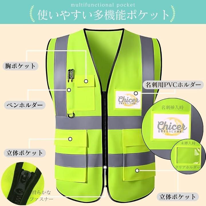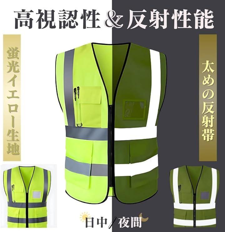 「高視認性で夜間も安心」蛍光イエローと広範囲の反射帯により、暗闇や夕方でもしっかり視認され安全性を確保します。
