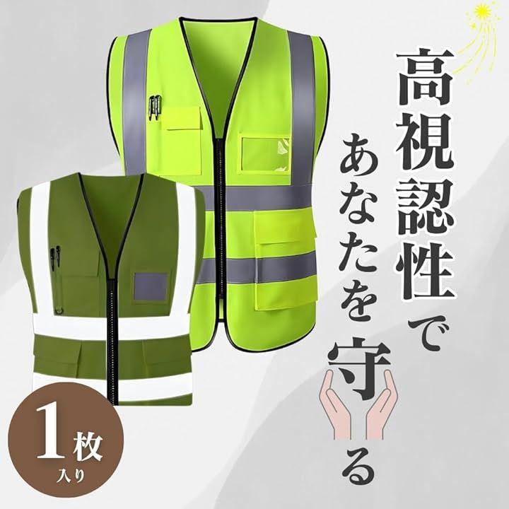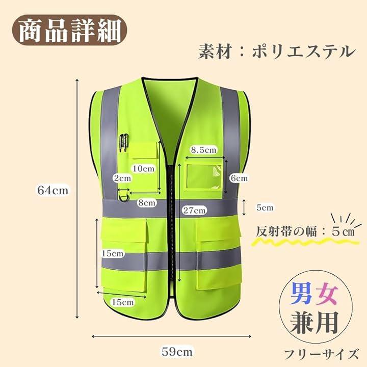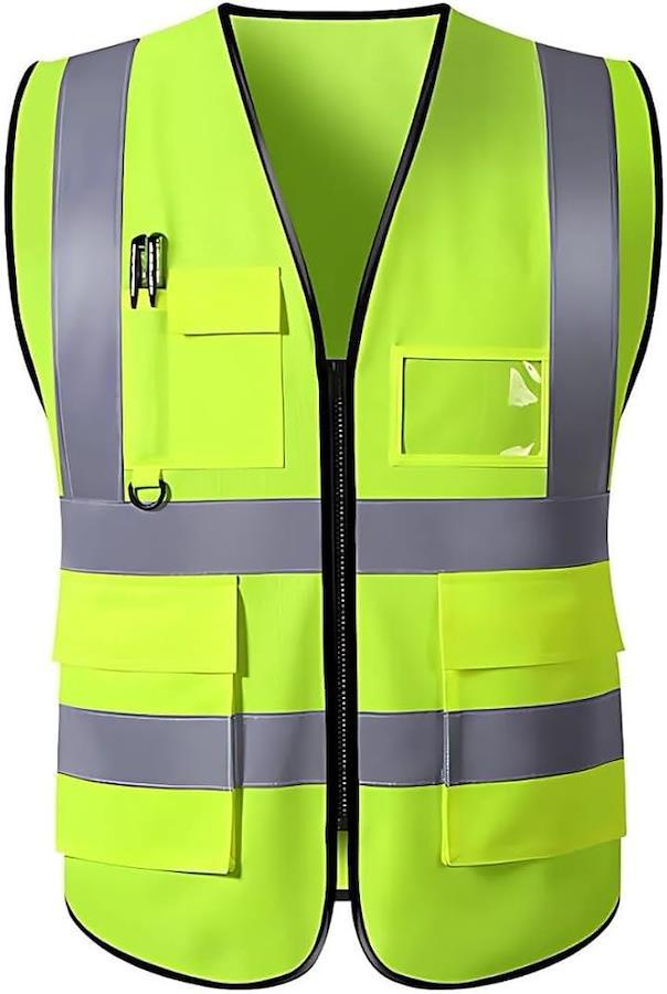 High-visibility reflective safety vest, fluorescent yellow, one size fits all, unisex, mesh material, multiple pockets