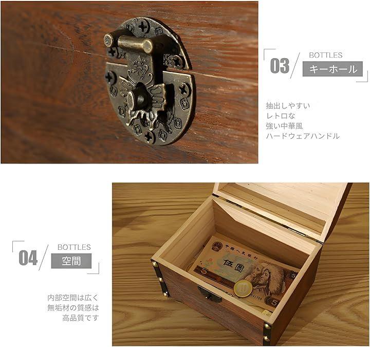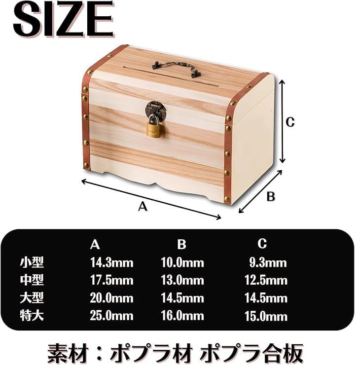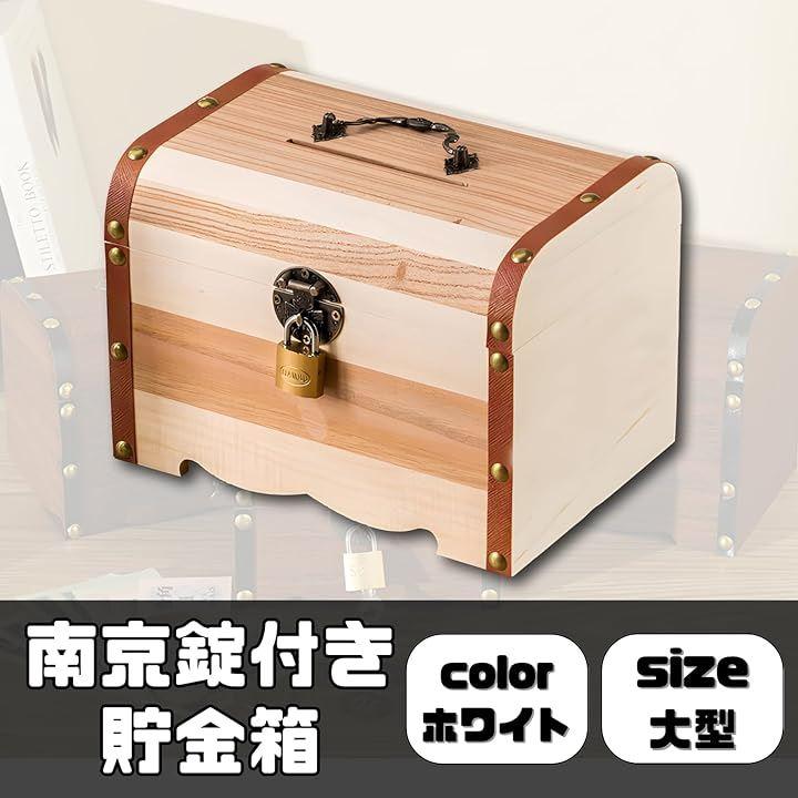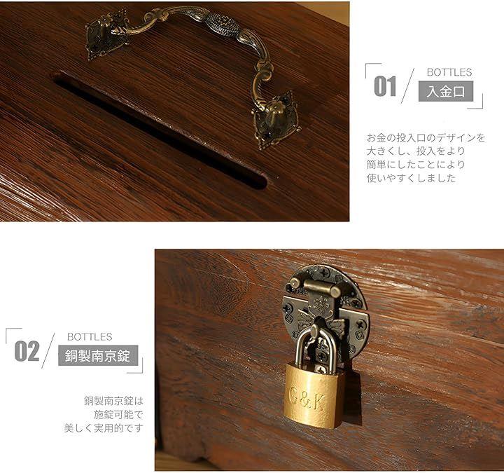 「安全な保管」この貯金箱は、鍵付きの南京錠を採用しており、大切な貯金や小物をしっかりと守ります。