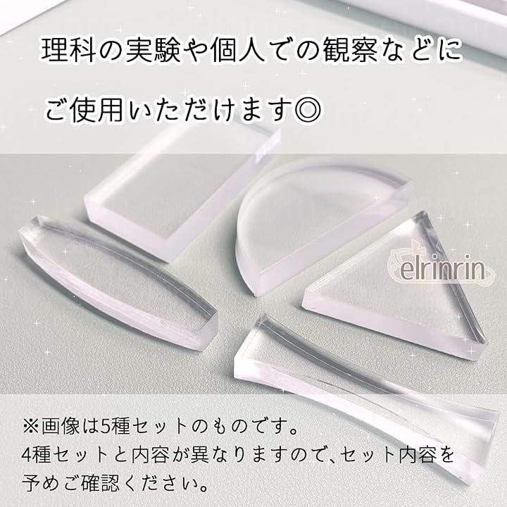 5種類あるのでそれぞれどう光が屈折するか比べやすいです。
