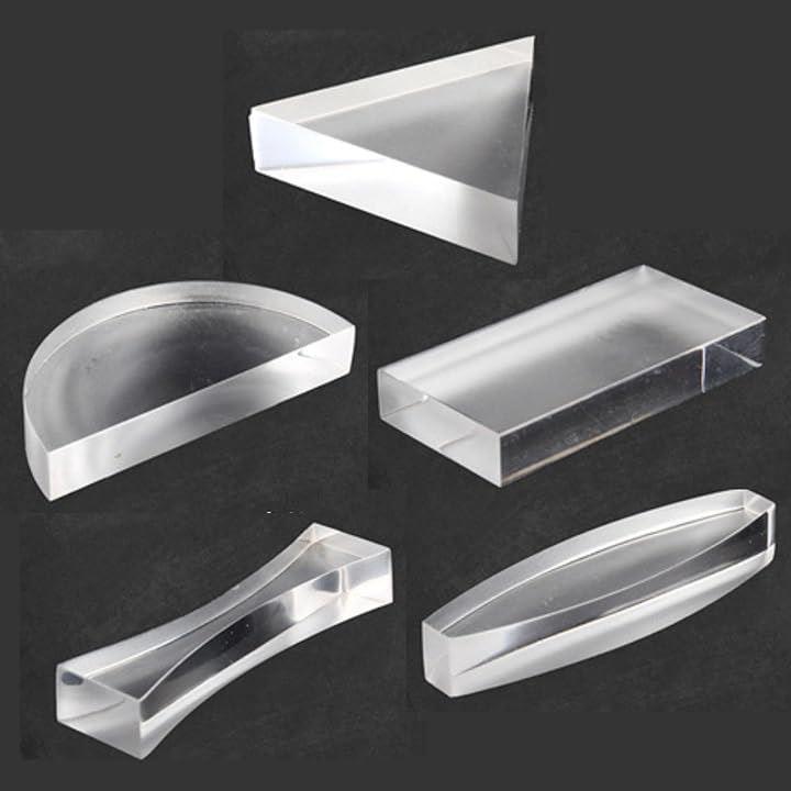 「光路観察用レンズ、5種セット」直進の光を当てると光の屈折の観察ができるプリズムです。