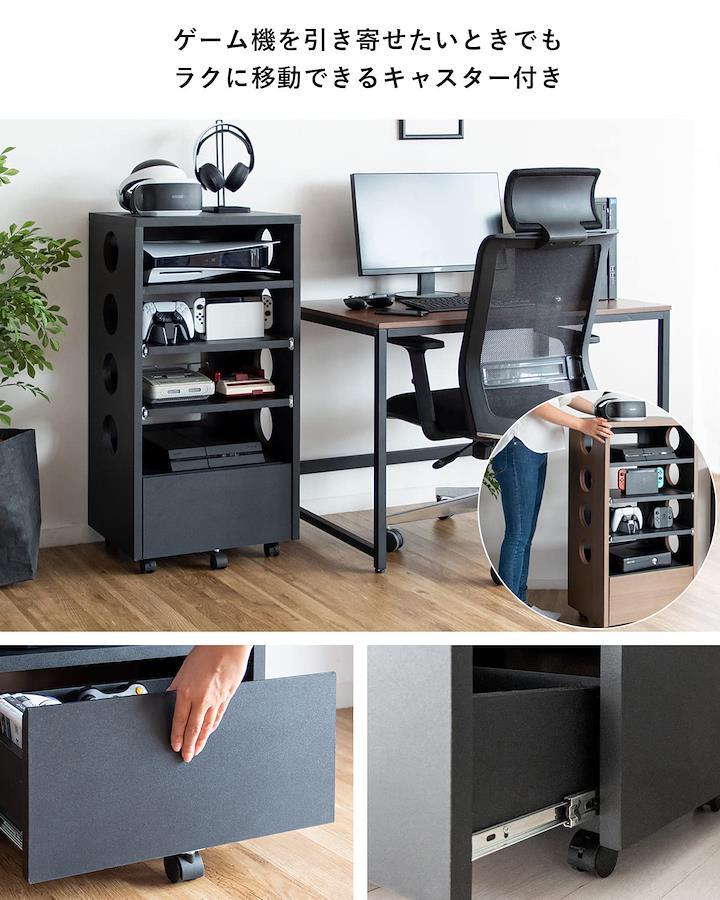 ゲームソフトが収納可能(ソフト最大35枚収納可能)キャスター付