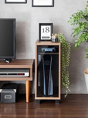 PS5等、縦置き型ゲーム機がスッキリ収納できるラック。邪魔にならない省スペース設計でお部屋に馴染む木目柄のスマートなデザイン。ホコリを防ぎ、プッシュ式で開閉しやすいガラス扉。安定感のある脚付きデザインでゲーム機をしっかりと支えます。