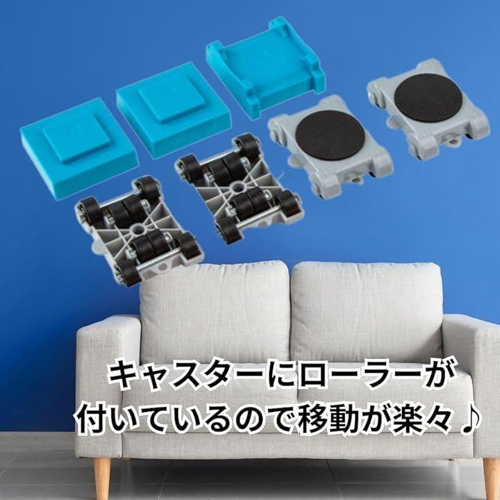 「重たい家具も楽々」家具の移動を手軽にするキャスター付きツールは、どの角度でも自由に動かせるので、狭い場所や曲がりくねった通路でもスムーズに移動が可能です。