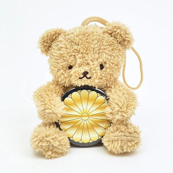 モチーフ: 皇室 / 菊紋(十六八重表菊) 特徴: 日本の最高権威である皇室の紋章「菊紋」を抱くベア。その厳格で美しい形は、平和と永遠の繁栄を象徴しています。格式と上品さを求める方、尊い存在を大切にしたいと願う「尊貴ベア」です。・武将解説(家紋の由来として): 菊紋は、日本の皇室の紋章として古くから用いられてきました。元々は後鳥羽上皇が自らの身の回りの物にこの菊の意匠を用いたことに始まるとされ、その後、天皇家の紋章として定着しました。菊は秋の深まりの中で鮮やかに咲く花であり、長寿や高貴、そして平和の象徴とされています。この紋は、武家が天下を争う戦国時代においても、時の権力者が敬意を払うべき日本における最高の権威と格式を示し続けてきました。・家紋解説: 正式には「十六八重表菊」と呼ばれるこの菊紋は、花弁が八重(多重)に重なり、外側から十六枚の花弁が描かれた格式高い意匠です。円形の中に美しく整然と配置された花弁は、**「永遠の生命力と調和のとれた平和な世界」**を象徴しています。黄金に輝く菊紋を抱きしめるベアは、最高の格式と上品さ、そして揺るぎない平和への願いを体現しています。品格を高め、尊い存在を大切にしたいと願うあなたのための「尊貴ベア」です。