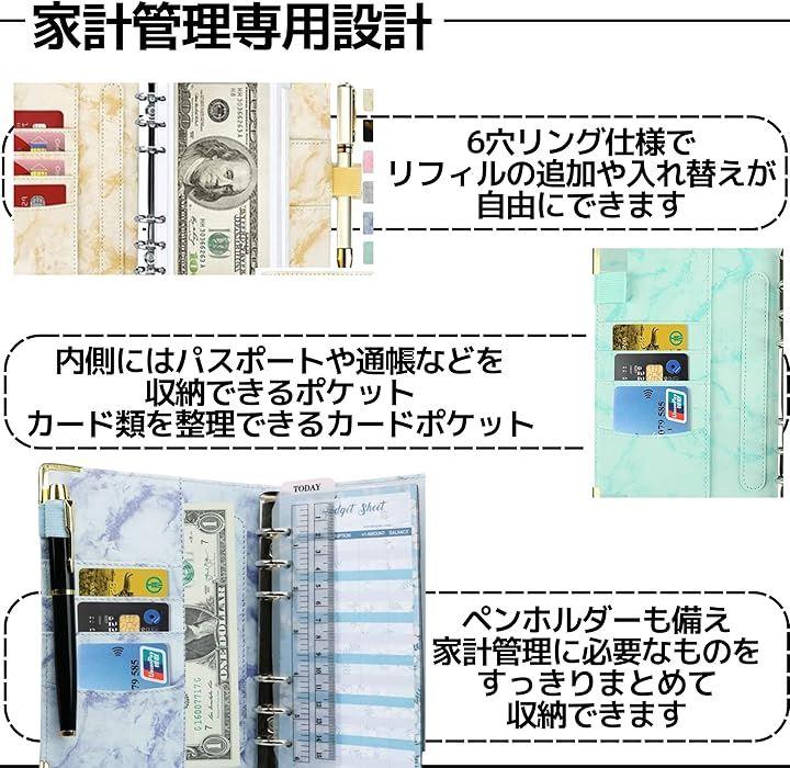 「おしゃれな大理石柄」大理石柄が目を引くおしゃれなデザインで、毎日の家計管理が楽しくなります。