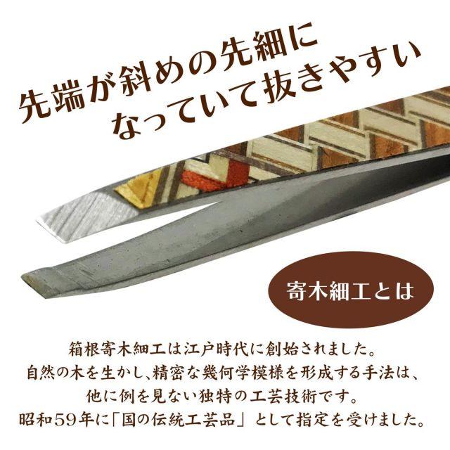 【コンパクトでおしゃれな毛抜き】コンパクトなサイズなのでポーチなどに入れて持ち運べばいつでもどこでも使うことができます。また箱根の伝統工芸寄木を使っているので他とは違っておしゃれで使いやすい毛抜きです。