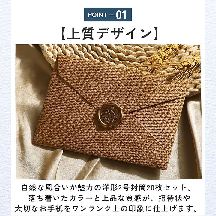 「上質デザイン」自然な風合いが魅力の洋形2号封筒20枚セット。