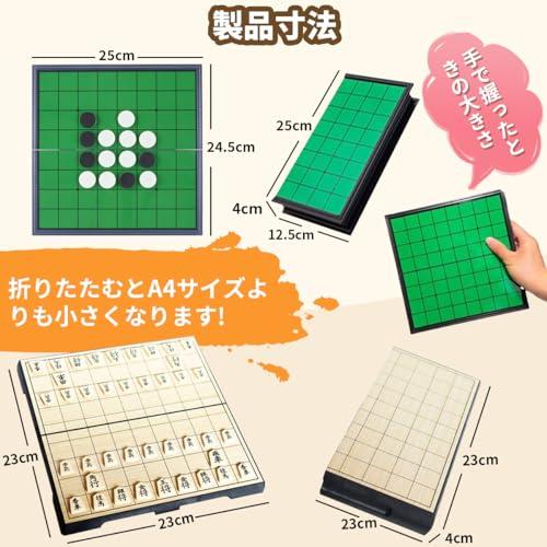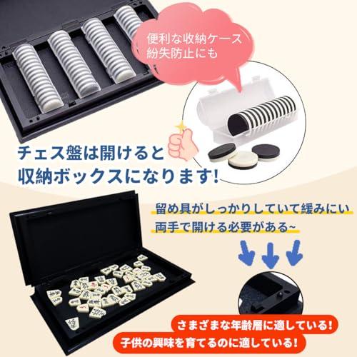 この製品の特徴は、マグネット式である点です。旅行の移動中にも使える商品です盤は二つ折りにでき、駒も中に収納できます。 【マグネット式】マグネットは駒に埋め込まれており、ある程度簡単に飛び散る程度の磁力があり、駒を上に乗せてもズレにくく、移動中でも車内で楽しめる。失われやすい可能性が低く、子どもにとってとても良い知育ゲームです。 【収納に便利】駒を収納する箱は4つあり、整理しやすい。コンパクトに折りたたむことができ、持ち運びもしやすく、旅行や温泉にもぴったり! 【製品寸法】皿面のサイズは25×24.5 cm、高さ2 cmで、持ち運ぶのも簡単です。 【対象年齢】対象年齢:6歳以上 【場面】旅行中の車内やバスや電車の中で、旅行中のホテルや旅館、ホームパーティーなどで気軽に遊ぶことができます。