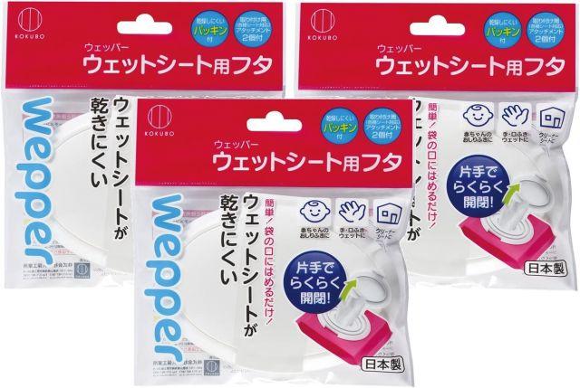 Kokubo Industries Wepper Wet Wipe Lids (Set of 3 / Includes Large and Small Attachments) for Wet Wipes and Baby Wipes (Just Snap on / Open)