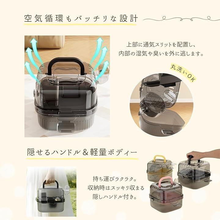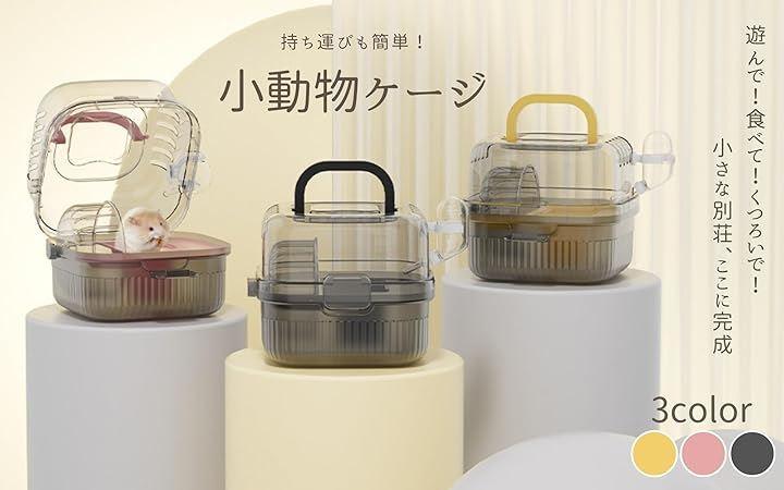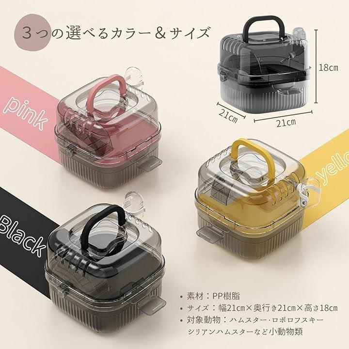 「快適な小動物用お出かけケージ(ブラック・イエロー・ピンク)」 透明デザインと脱出防止設計で、小動物の移動をサポートするお出かけ用ケージです。