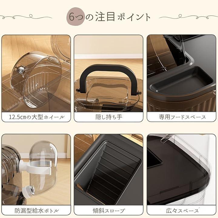 「中の様子がしっかり見える透明設計」 透明素材を使用しているので、移動中もハムスターの様子をしっかり確認できます。