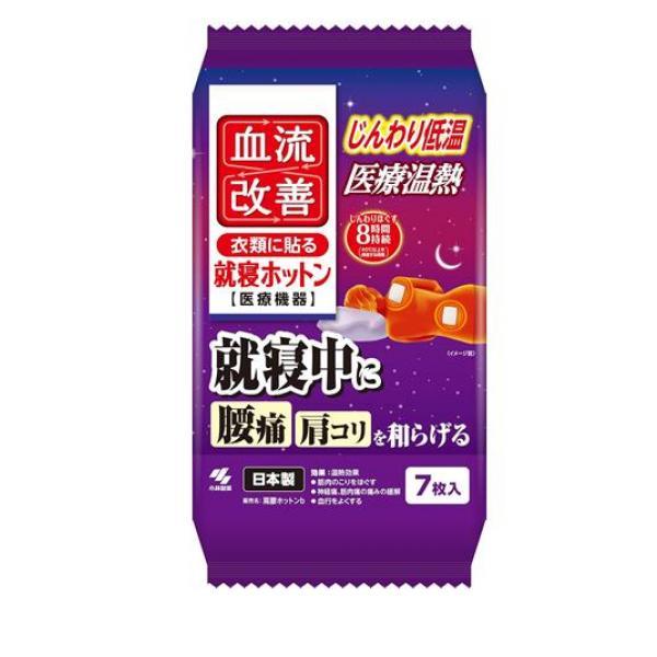 製品の特徴●小林製薬 血流改善 就寝ホットン●衣類に貼る●就寝中に腰痛・肩コリを和らげる●じんわりほぐす●8時間持続(40℃以上を持続する時間)●医療機器届出番号:28B3X10011000050●医04 整形用品 一般医療機器 家庭用温熱パック JMDNコード 71019000●販売名:肩腰ホットンb