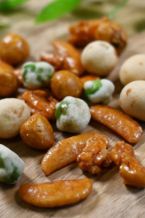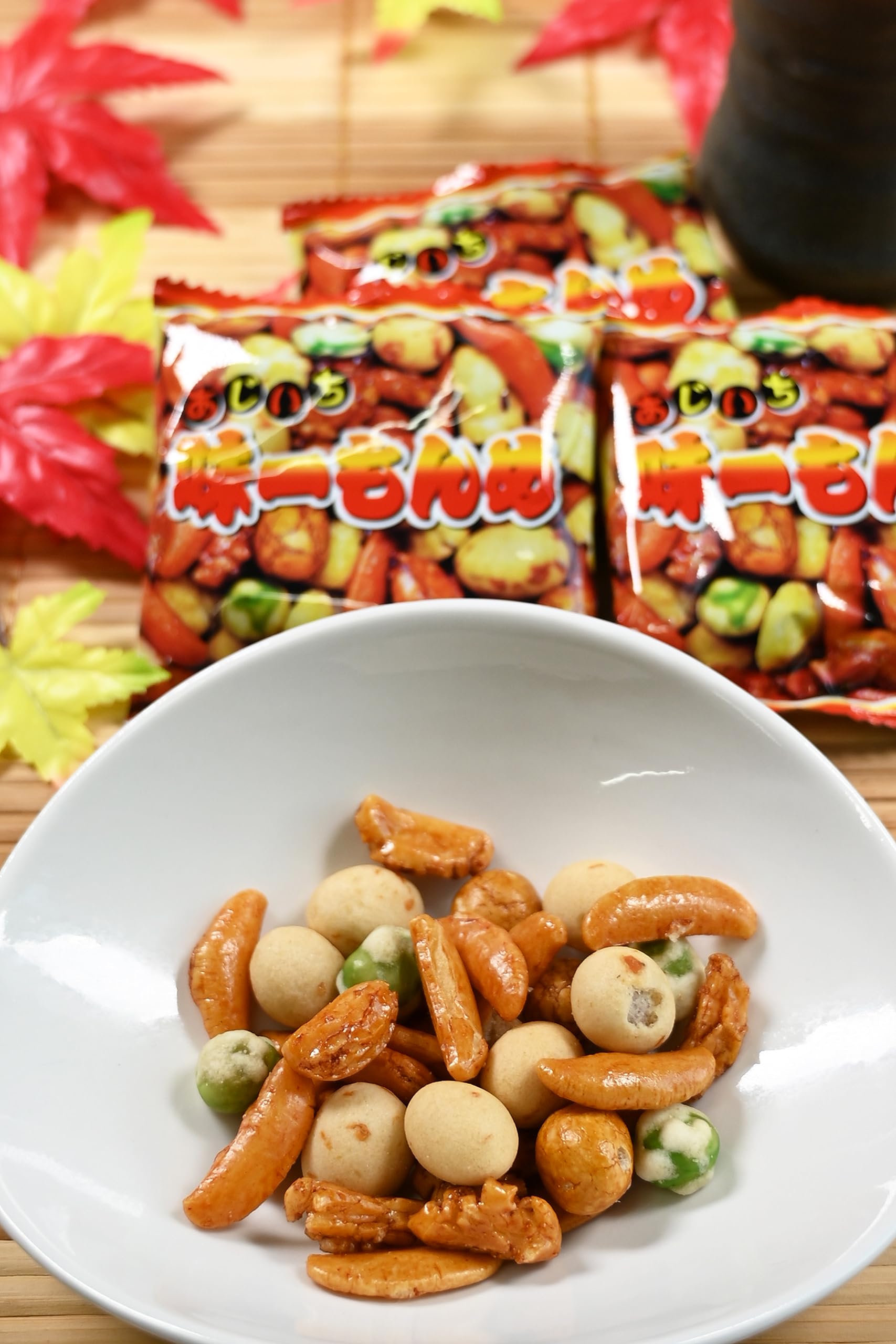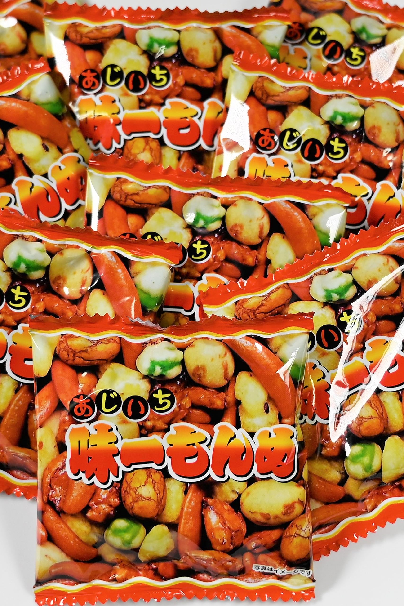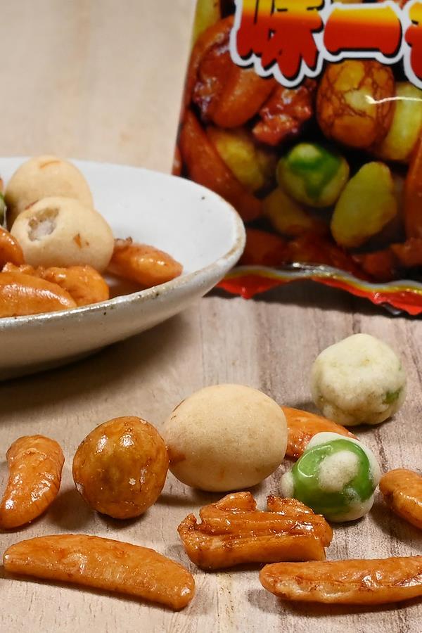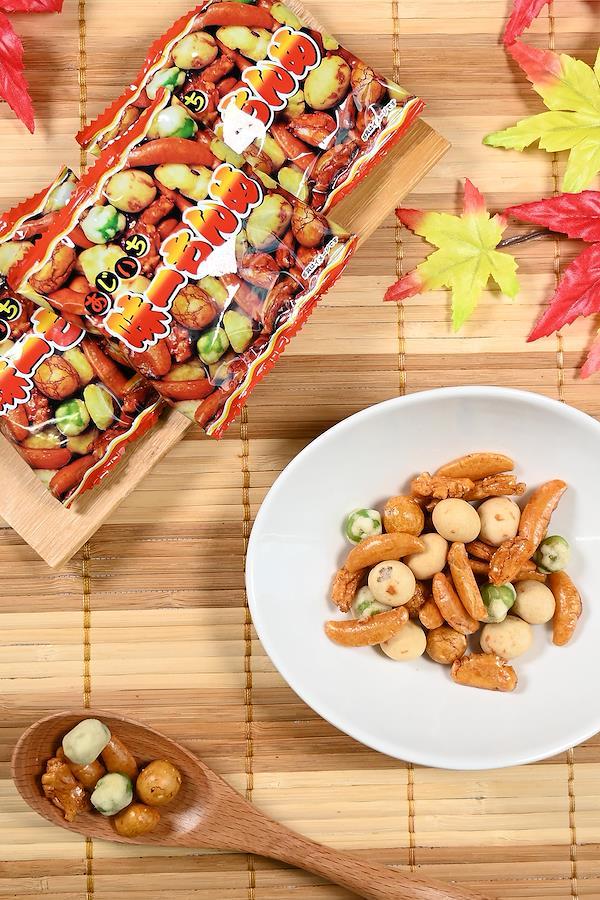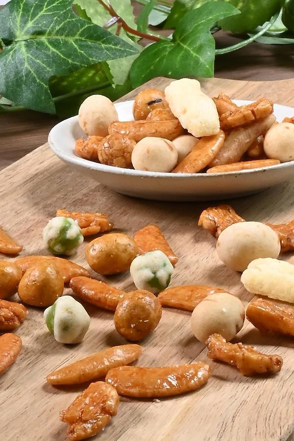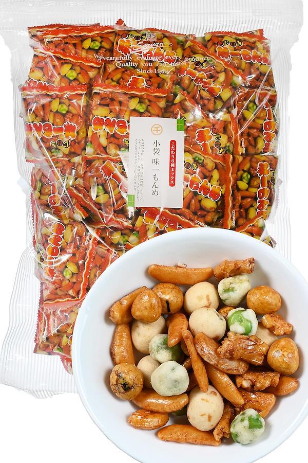 人気のつまみをミックスしました。小袋でしけらず保存も簡単です。毎日のおやつやつまみに、ついつい手が出るミックスです。業務用としてチャームやつまみにもおすすめです。内容:★画像5枚目 いかピー ピーナッツにまわりにいかを練り込んだ衣がついたさくさくの食感のナッツ。 ★画像6枚目 醤油豆 ピーナッツの周りに衣をつけ醤油味にし海苔をつけた和風の味わいです。 ★画像7枚目 つぶ餅 国産米をあられにし甘辛い醤油味になってます。 ★画像8枚目 ピー揚げ クラッシュピーナッツとあられを揚げた軽い食感のあられです。★画像9枚目 グリーンスナックと柿の種 エンドウ豆をカリッと揚げたものといわずとしれた柿の種です。原材料:澱粉、米(国産)、落花生(中国産)、マロハットピース、寒梅粉、小麦粉、植物油脂、砂糖、しょうゆ、デキストリン、食塩、いか、発酵調味料、唐辛子、ガーリックパウダー、蛋白加水分解物、海苔、かつおエキス、加工澱粉、着色料(カラメル色素、パプリカ色素、紅麹色素、青1、黄4)、調味料(アミノ酸等)、膨張剤、香辛料抽出物(原材料の一部に小麦、大豆を含む)内容量:960g約100袋入り【重要】メーカーによる商品リニューアルに伴いパッケージ(内容量も含む)変更が行われた場合、新パッケージでお届け致します事ご了承願います。
