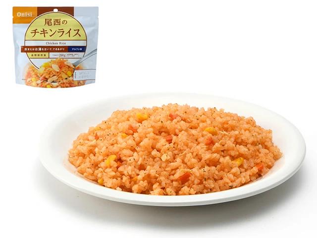 うるち米(国産)、味付乾燥具材(味付鶏肉、人参、コーン、味付玉ねぎ)、調味粉末(食塩、ポークパウダー、粉末醤油、トマトパウダー、チキンエキスパウダー、砂糖、野菜エキスパウダー、香辛料、パセリ、酵母エキスパウダー、食用植物油脂)/調味料(アミノ酸等)、甘味料(カンゾウ)、微粒酸化ケイ素、香料、パプリカ色素、酸味料、酸化防止剤(ビタミンE)、トレハロース、(一部に小麦・大豆・鶏肉・豚肉を含む)
