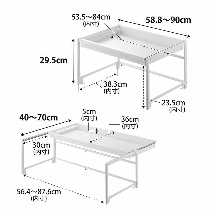 ■サイズW58.8-90×D40-70×H29.5cm[内寸]天板:W53.5-84×D36×H5cm天板スライド時の開口部:D30cm天板下:W56.4-87.6×D38.3×H23.5cm