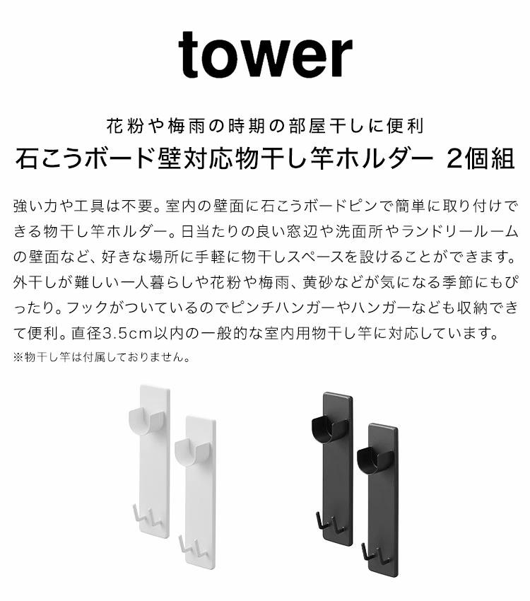 ■関連キーワード山崎実業 石こうボード壁対応物干し竿ホルダー タワー tower 2個組 賃貸 室内干し 部屋干し 屋内 洗濯 グッズ ラック フック 壁付け 石膏ボードピン 2113 2114 yamazaki 山実 一人暮らし 洗面所 リビング 白 黒 ホワイト ブラック おしゃれ シンプル セット 花粉対策 梅雨 黄砂対策 10代 20代 30代 40代 50代 60代 70代 80代 大学 大学生 保育園 保育所 幼稚園 学生 学校 息子 娘 孫 女性 女子 女の子 ガールズ レディース girl 男性 男子 男の子 ボーイズ メンズ boy 父 母 おかあさん おとうさん パパ ママ シニア おじいちゃん おばあちゃん お爺ちゃん お婆ちゃん 祖父 祖母 じいじ ばあば プレゼント プチ ミニ ギフト お祝い お返し 粗品 景品 送別会 イベント 母の日 父の日 おしゃれ オシャレ お洒落 かわいい 可愛い カワイイ シンプル かっこいい カッコいい カッコイイ モノクロ スタイリッシュ ナチュラル モダン 無地 北欧 シンプル おしゃれ オシャレ お洒落 モノトーン スマート 引っ掛け かける 引っ掛け収納 隙間収納 浮かせる 新生活 引越し 引っ越し 新築 結婚 祝い 新居 マンション アパート 一人暮らし ひとり暮らし 1人暮らし 二人暮らし ふたり暮らし 2人暮らし ファミリー 家族 一戸建て 戸建 賃貸 便利 インテリア インテリア雑貨 収納雑貨 生活雑貨 整理整頓 整理用品 スペース 有効活用 山実 やまじつ ヤマジツ やまざきじつぎょう たわー towerシリーズ ブランド インテリアブランド
