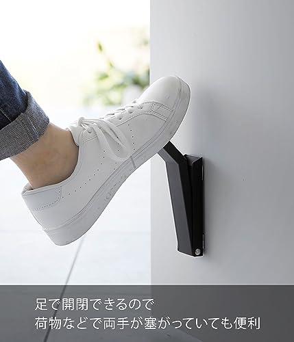 立ったまま片足で操作できる玄関ドアストッパー。サッと広げてサッとしまえるシンプルで機能的なドアストッパーです。立ったまま片足で開閉できるので、荷物などで両手がふさがっていても便利。引っ掛かりがあるので足で簡単に上げ下げができます。スチール製の玄関ドアに強力マグネットで簡単取り付け!使わない時は折り畳んでスリムに収納できます。すっきりしたデザインで玄関の邪魔になりません。設置面はシリコーンのすべり止めでしっかり止まります。 商品サイズ:使用時:約W4.5×D7×H28cm 収納時:約W4.5×D4×H17cm 品質表示:本体:スチール(粉体塗装)マグネット、ストッパー先端・滑り止め:シリコーン 取り付け可能なドア:マグネットがつく平らな面のスチール製ドア ※ドア下部から地面との間が約15cmを超えるドアには取り付けられません。 カラー:ブラック 収納時:約W4.5×D4×H17cm