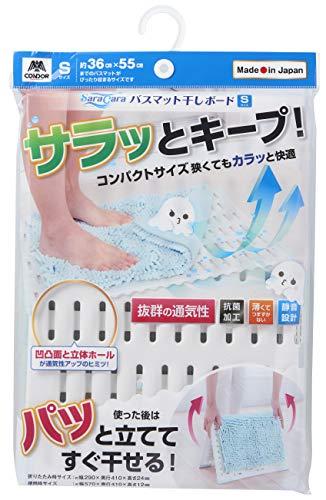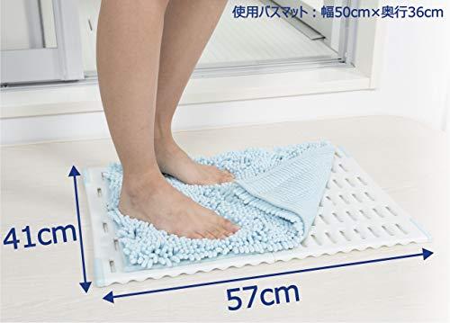 床を濡らさずジメジメマットがそのまま干せる! ○ベランダまで行かなくても大丈夫!使用したバスマットをそのまま干せる。○省スペースで干すことができる。○女性でも簡単に持ち運びができる軽量設計。使用サイズ(約):W570xD410XH12mm本体重量(約):600g単品(パッケージ)サイズ(約):W330XD25XH515mmパッケージ重量(約):625gベース:ポリプロピレン滑り止め:エラストマー スタイル:単品 生産国:日本 素材・材質:ボード=ポリプロピレン/滑り止め=エラストマー 本体サイズ:使用時/約幅57×奥行41×高さ1.2cm、折りたたみ時/約幅29×奥行41×高さ2.4cm 使用したバスマットがそのまま干せてすぐ乾燥。すのことして使用時は床面を湿気から守り、傷めない。