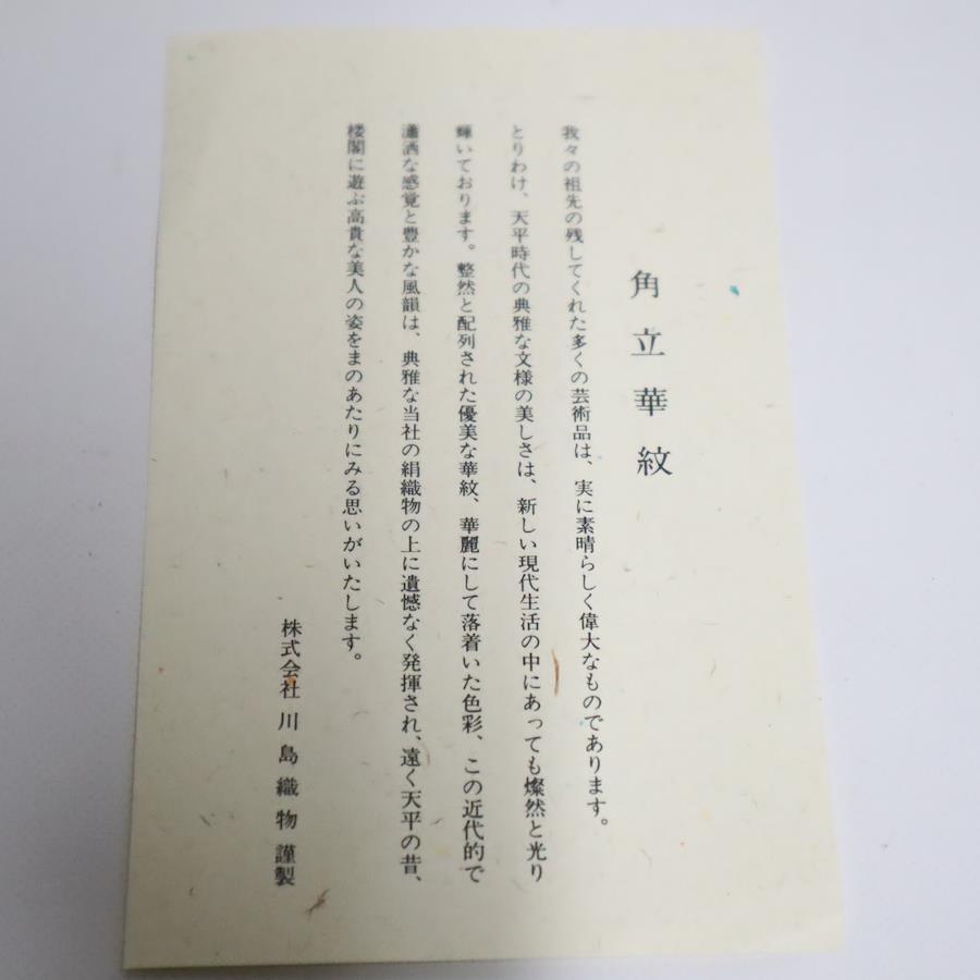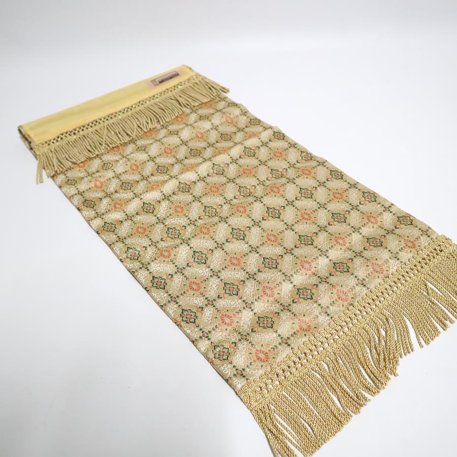 【詳細】■ 商品名・モデル:川島織物 角立華紋 絹100% テーブルセンター(房付き)■ ブランド:川島織物(KAWASHIMA)■ カラー:金地 × 角立華紋■ 状態:- 傷・汚れ:目立つ傷や汚れはありません。保管による折りシワがあります。• 使用感:リユース品のため、詳細な使用状況は不明です。■ 付属品:木箱、解説カード■ 素材:表地 絹100%/金銀糸使用■ セット内容:テーブルセンター本体のみ