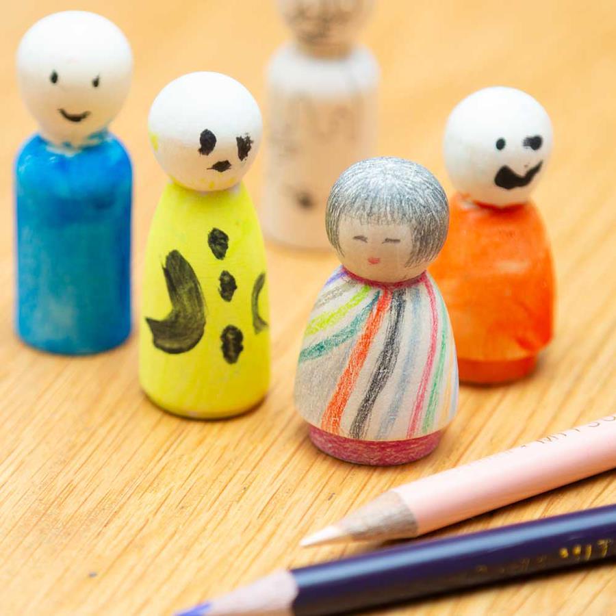 工作や塗り絵を楽しめる簡易木製人形シリーズ。シンプルで安価なので、色塗りなどのワークショップに活用いただけますし、これに更に木片や布を接着しても楽しめます。もちろん絵の具等も使用出来ますので、工作教室や学校などのイベント等でもご活用ください。