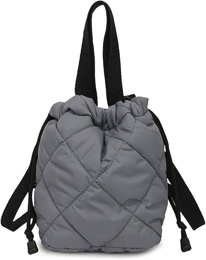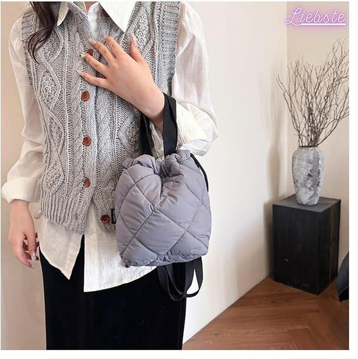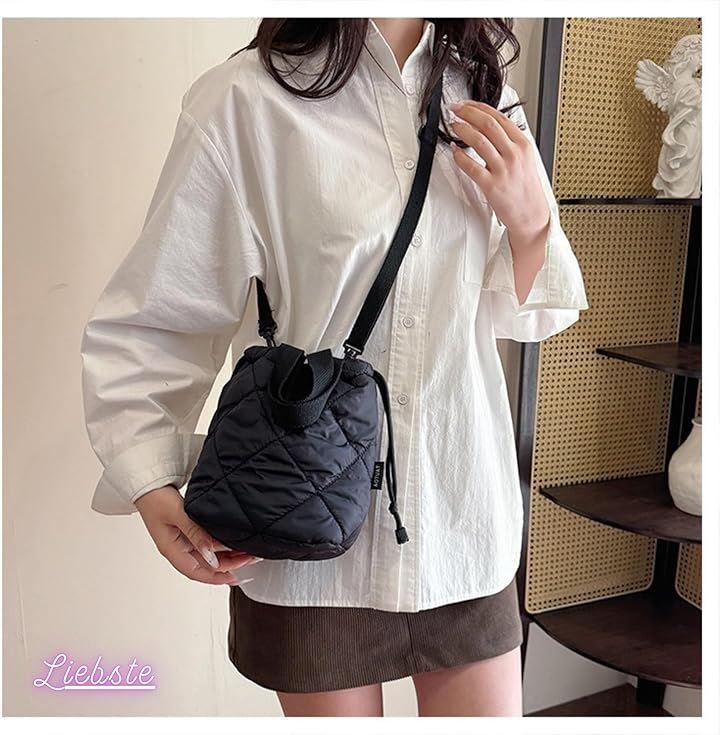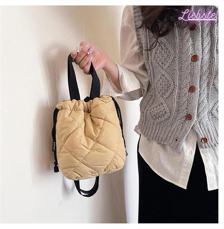 ふわふわのキルティングx巾着タイプで中身が見えず、防犯面も。
