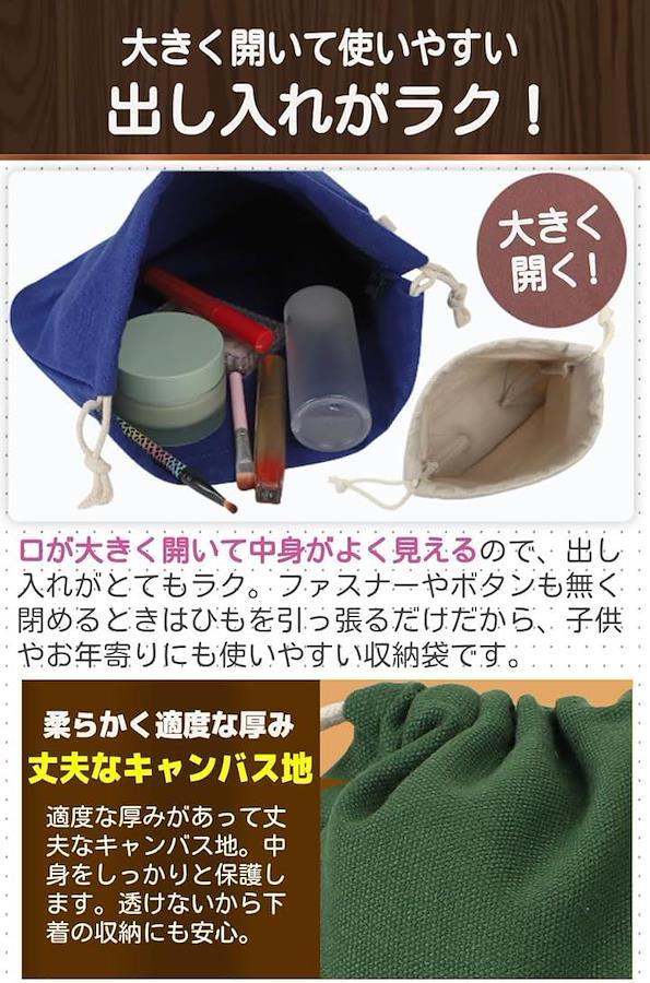 「カバン内の整理」でお困りのあなた こんな悩みありませんか? カバンの中で小物が散らばる…アイテムごとに整理したい… お手頃で解決できる物が欲しい…出し入れは簡単な方がいい… その悩みをスッキリ解決。 和風カラーがかわいい.キャンバス地の巾着袋。