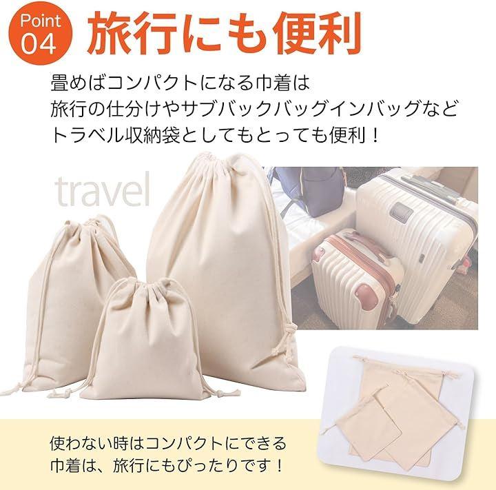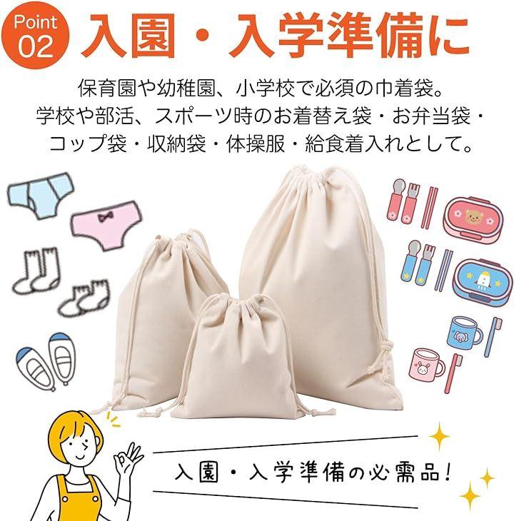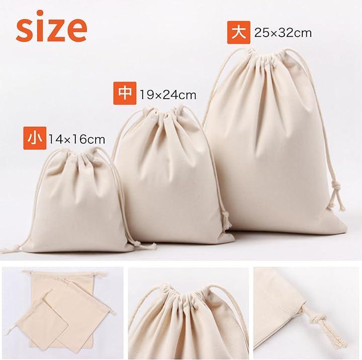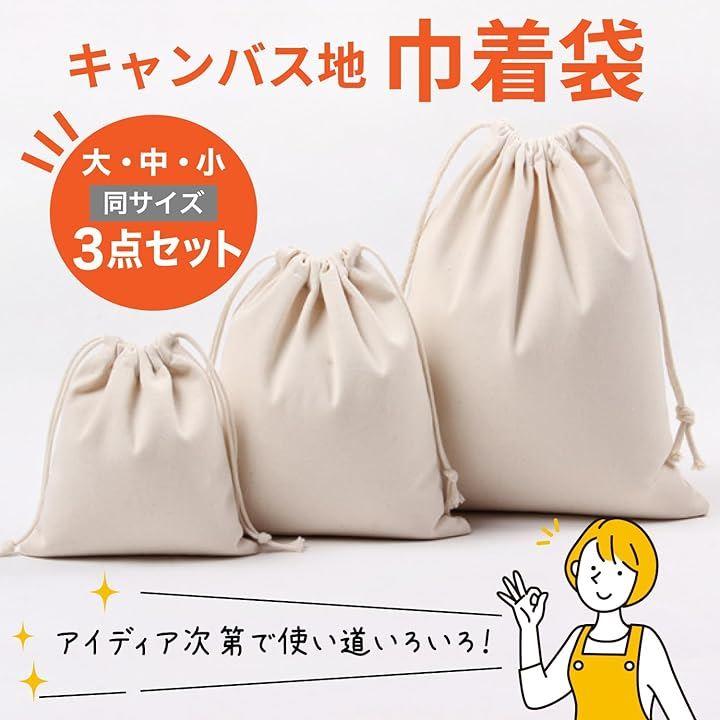 「キャンバス巾着袋 大・中・小各サイズ3枚セット」