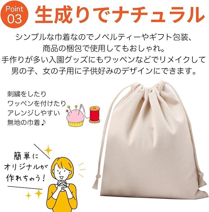 シンプルな巾着なのでノベルティーやギフト包装、商品の梱包で使用してもおしゃれ。