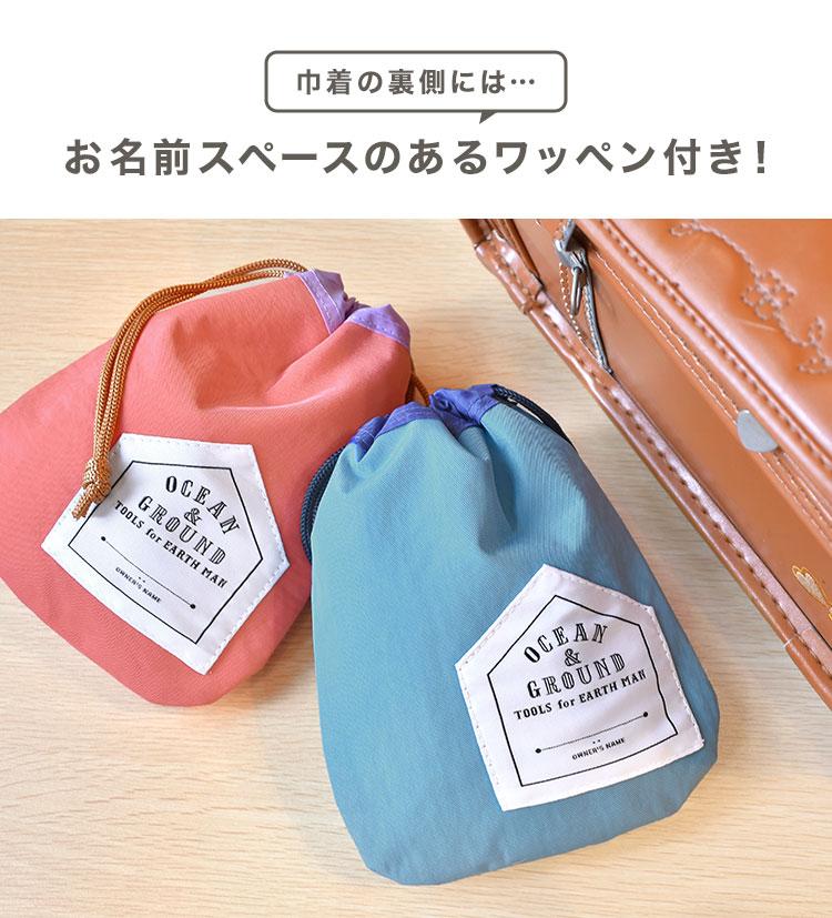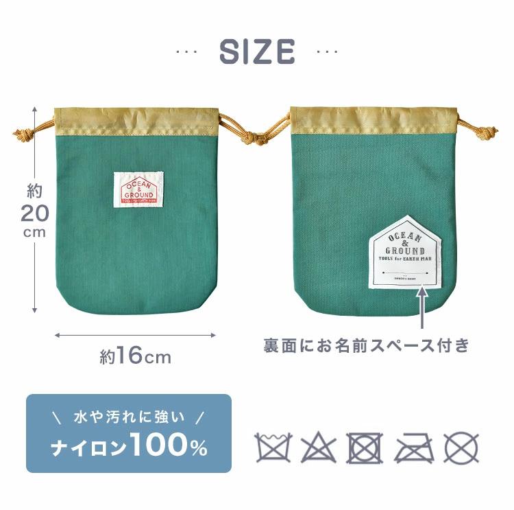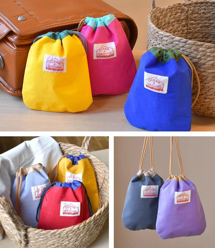 【巾着 S】人気のocean&groundからポップなカラーの巾着袋が登場!!お子様の通学グッズとして、ママのポーチとして使い方いろいろ!旅行の時もあると便利。豊富なカラー展開で、家族や友達とお揃いも◎