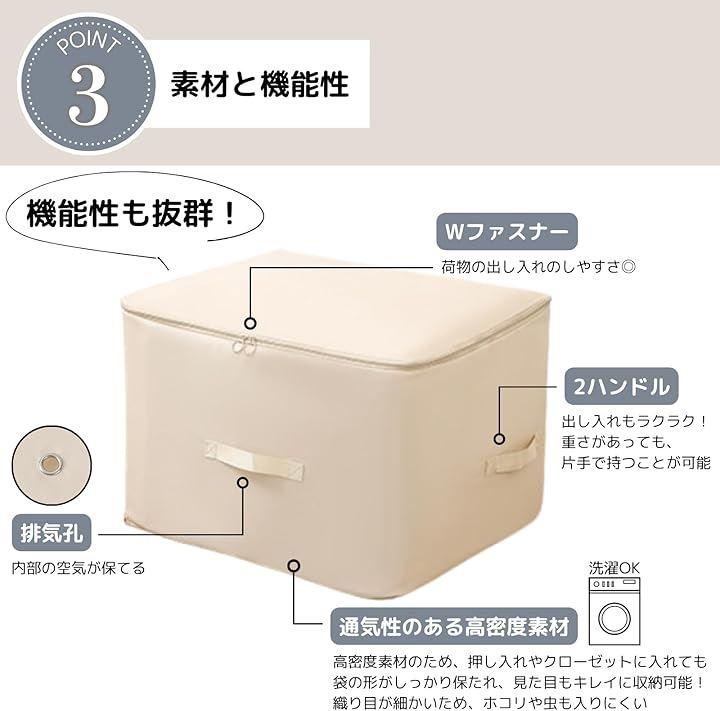 シングルからダブルまで収納OKな大容量サイズ 羽毛布団・毛布・シーツ・カバーなど一式をまとめて収納可能。