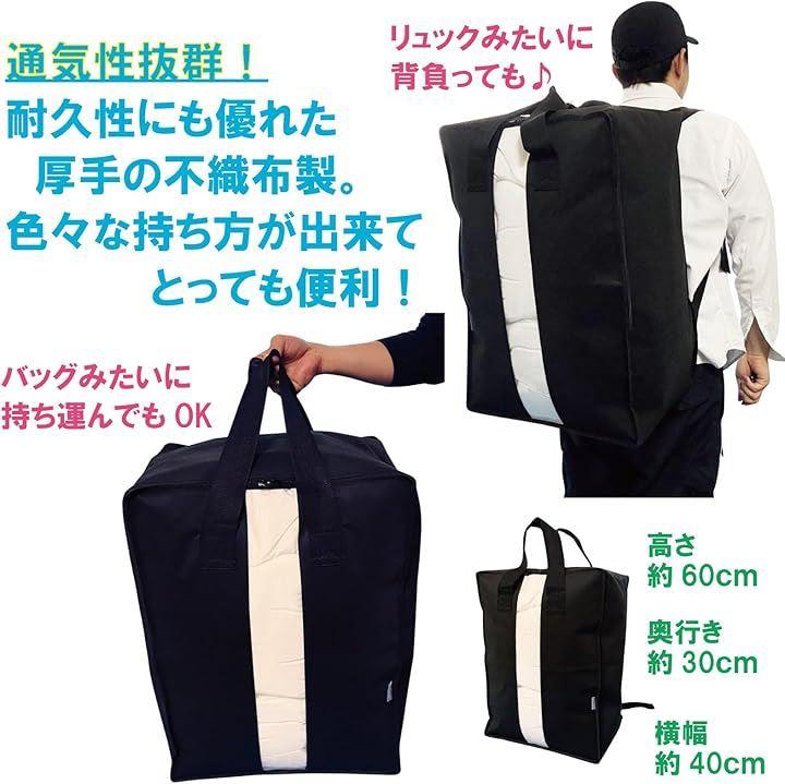 Large capacity futon storage bag with handles. Can store bedding and clothes together. Lightweight and made of breathable thick non-woven fabric. Convenient for moving, outdoor activities, laundromats, etc. Can be folded up thinly when not in use.
