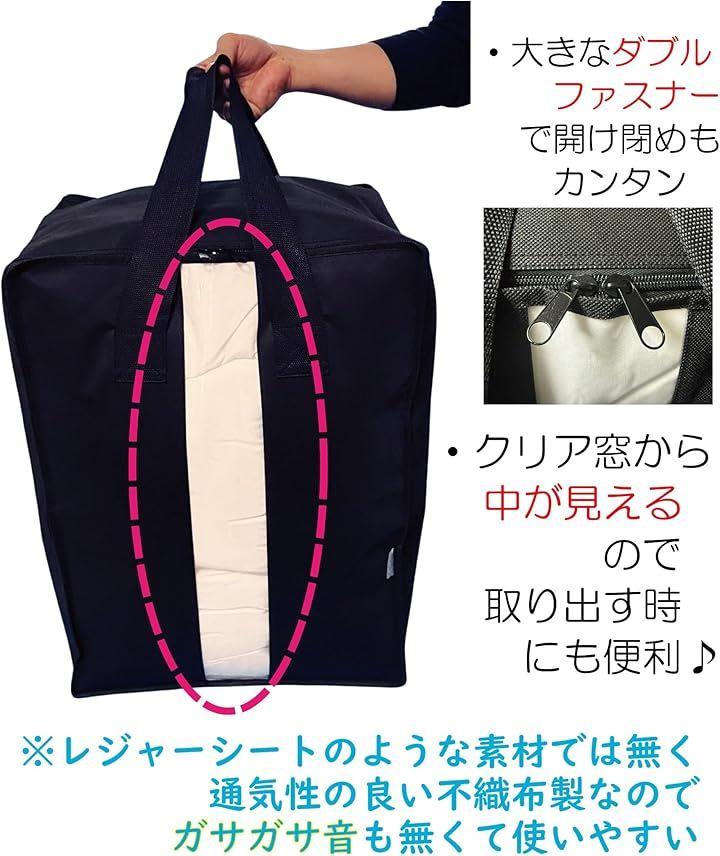 寝具や収納物、レジャーグッズなどを保管・持ち運びする時にとっても便利な不織布製/バッグ。通気性に優れた不織布製なので保管時も安心。