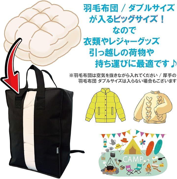 かさばる荷物の収納や持ち運びにとっても便利。リュックやバッグの様に持ち運べるので生活の様々なシーンでお使いいただける便利な収納袋です。