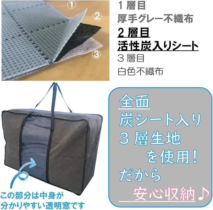 かさばる羽毛布団をスッキリ収納。通気性に優れた厚手の不織布(ふしょくふ)素材に活性炭シートを加工。