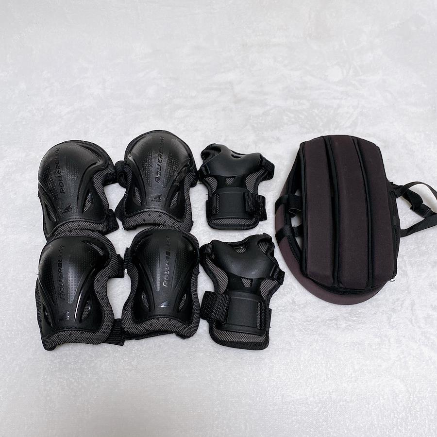 ローラーブレード製のプロテクターと、ヘッドギアと、収納用のトートバッグをお付け致します。