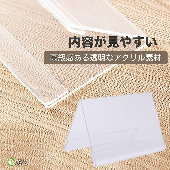 透明度が高いため、名刺、名前札、店舗のセール商品の価格表示、展示会の説明カードなど多用途におつかいただくことが可能です。