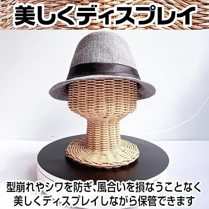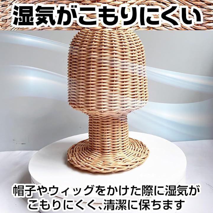 「ラタン素材の通気性で帽子を清潔にキープ」天然ラタンの優れた通気性により、帽子やウィッグに湿気がこもらず、いつでも清潔な状態を維持できます。