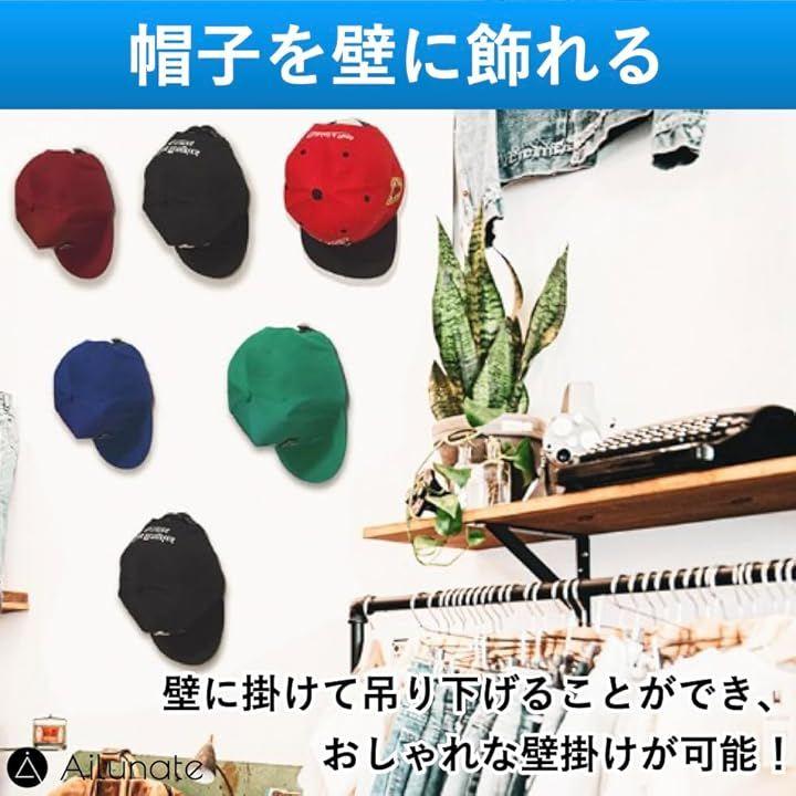 「帽子を壁に飾れる」帽子やキャップを壁に掛けて吊り下げることができ、壁掛けラックとして収納用途で使うことやディスプレイとしても飾ることができます。