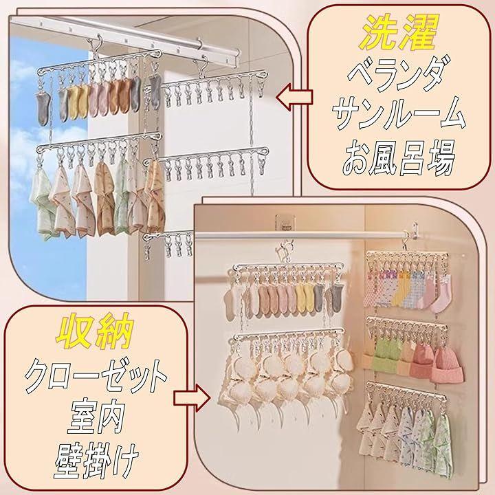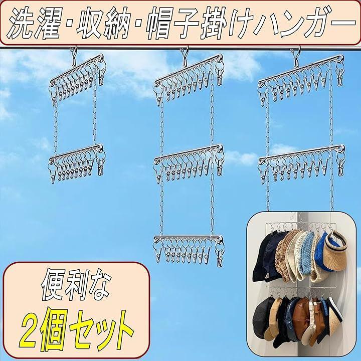 「帽子掛け・帽子ハンガーなどの収納に。」吊り下げ式のハンガーで帽子やバッグ・靴下や下着・洗濯物などを収納することができます。