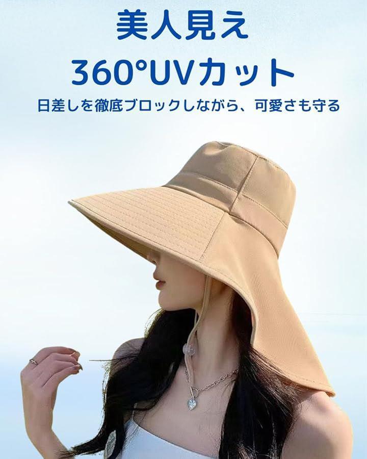 12cmワイドブリム ─ 広いつばが広範囲に影をつくり、直射日光や眩しさを抑えてメイク崩れも防止。
