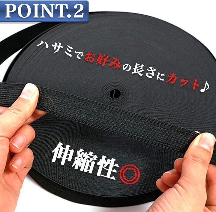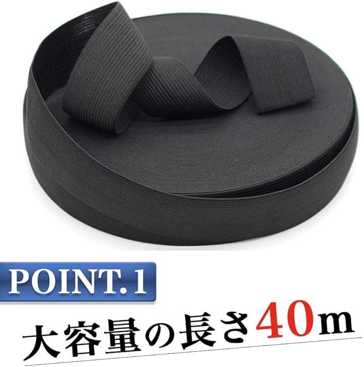 「商品内容」平ゴム(40m)サイズ:長さ40m、幅2.5cm 素材:ポリエステル カラー:ブラック