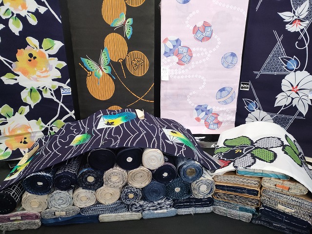 Heiwaya Main Store ■ 45 Yukata Fabric Rolls - All Unused - Featuring People, Butterflies, Floral Patterns, Morning Glory, Lily, etc. ppp3642