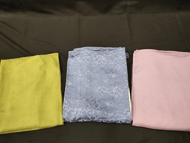 Heiwaya Main Store ■ Set of 3 plain-colored kimonos featuring cranes, floral patterns, and other patterns. Many are in good condition and unused. All silk. ppp3245